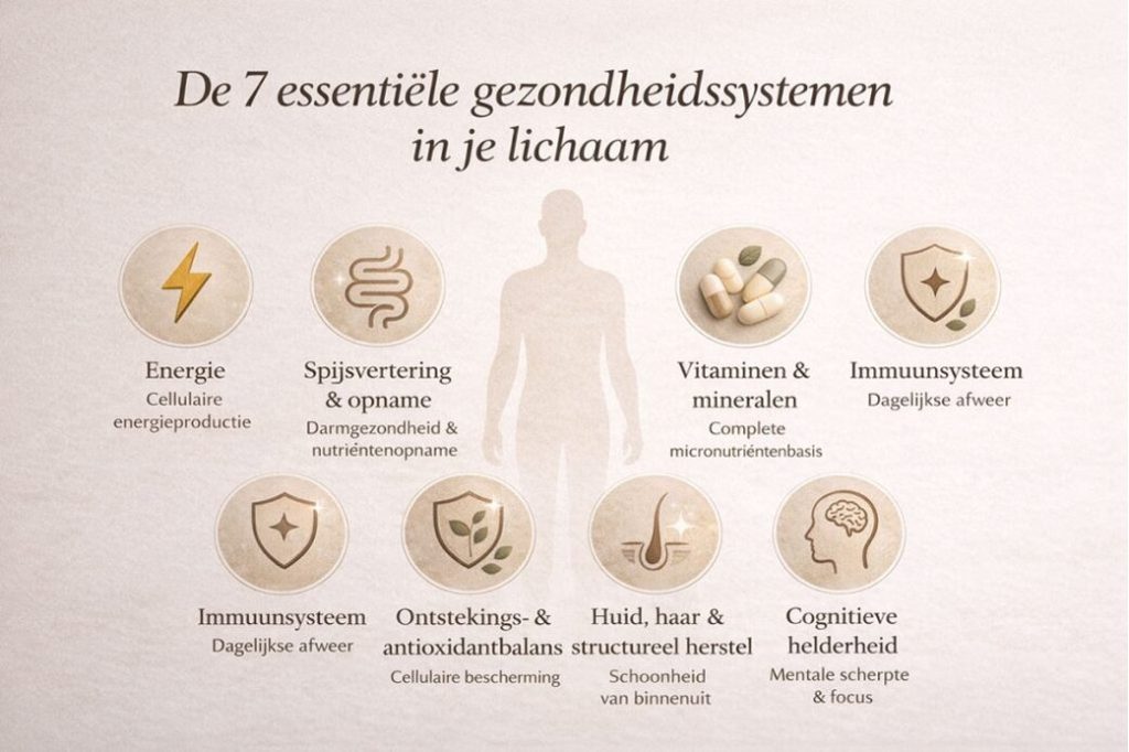 Eén dagelijkse maatschep is volledig opnieuw samengesteld om de 7 essentiële gezondheid-systemen te ondersteunen waar mensen voorheen meerdere losse producten voor gebruikten.
