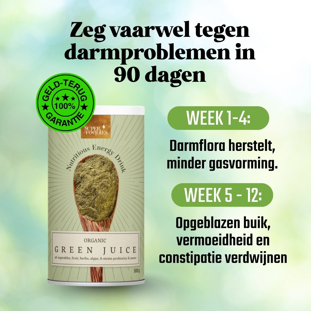 “Ik heb eerder probiotica geprobeerd en nooit iets gevoeld. Met Green Juice was mijn buik na twee weken volledig plat tegen de middag. Ik kon het niet geloven.”