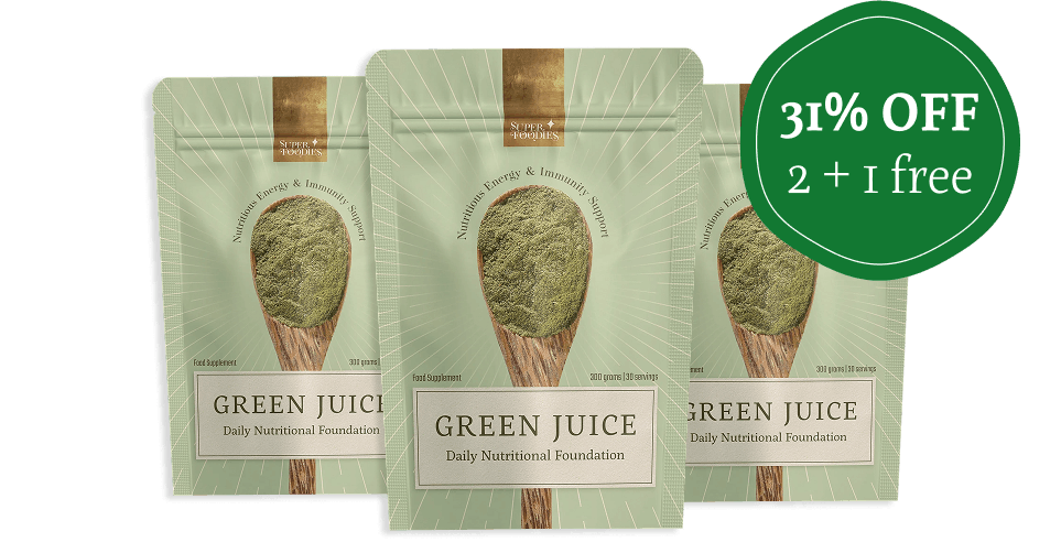 Green Juice contains 24 μg of Vitamin B12, your ‘energy vitamin’, which contributes to normal energy yielding metabolism. Vitamin C (450 mg) contributes to the reduction of tiredness and fatigue.