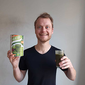“Wat een lekker spul! Het is groen, het is gezond, het voelt goed als ik het drink. Ik ervaar echt meer energie. Met elke slok werk ik aan mijn gezondheid. Fantastisch!”